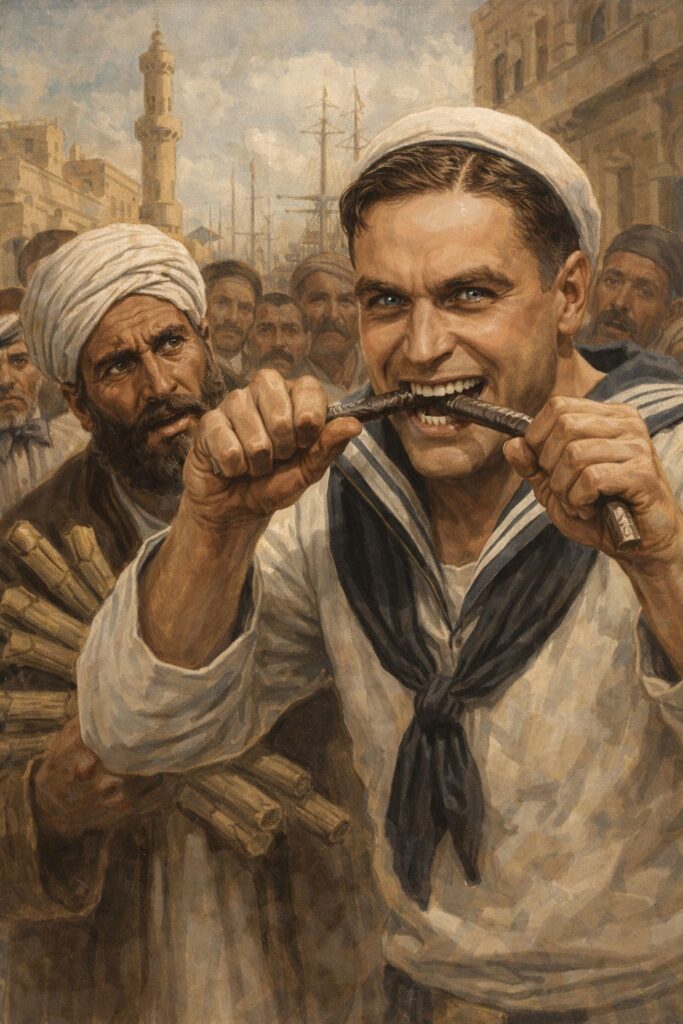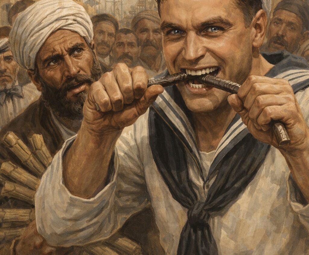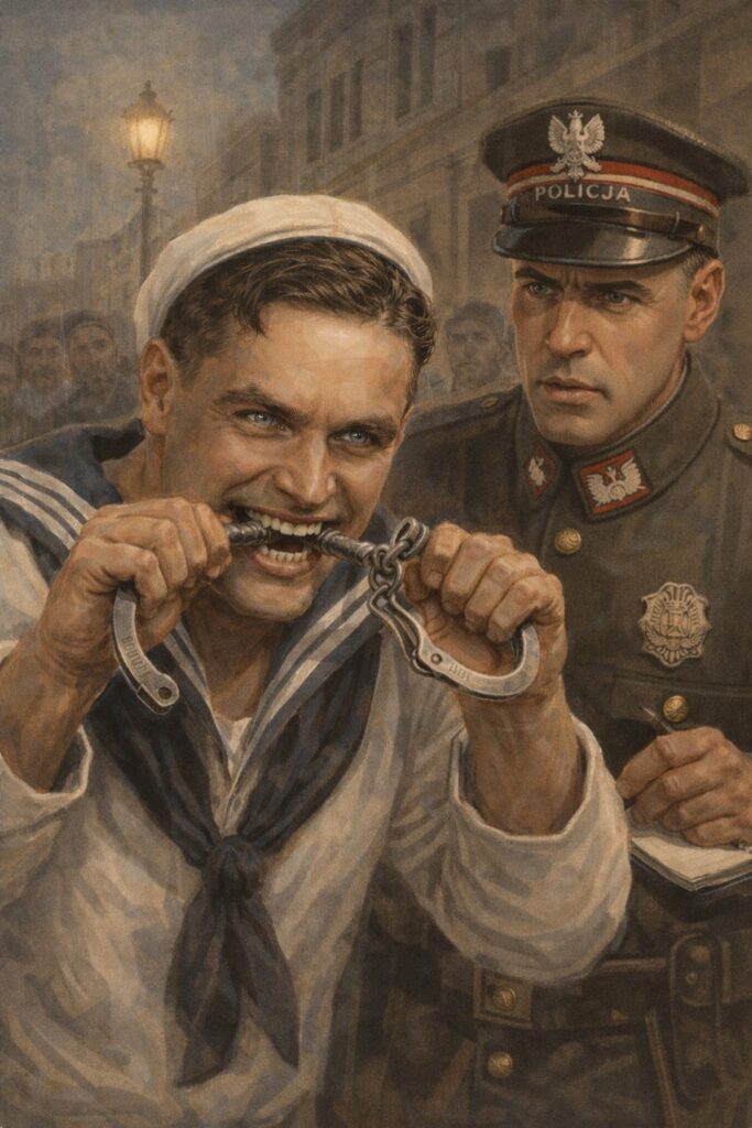 Radwan jakby nic spojrzał na kajdanki i przegryzł je raz, potem drugi. Policjant zapomniał spisać protokułu za przekroczenie godzin policyjnych, a po paru dniach złożył meldunek ze skargą na marynarza, który… zjadł kajdanki.